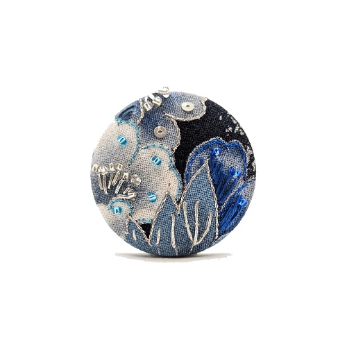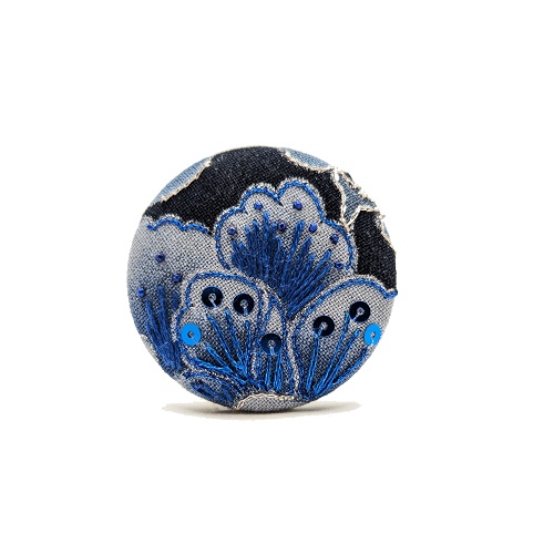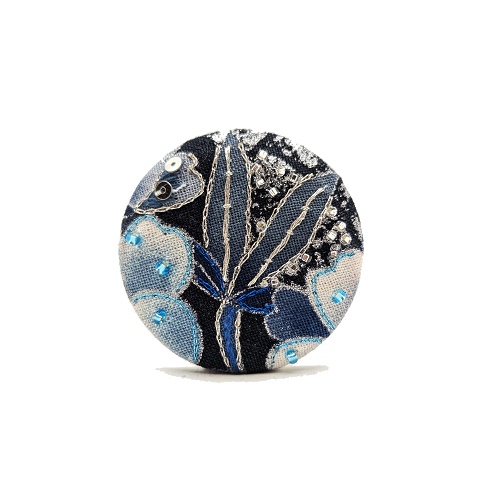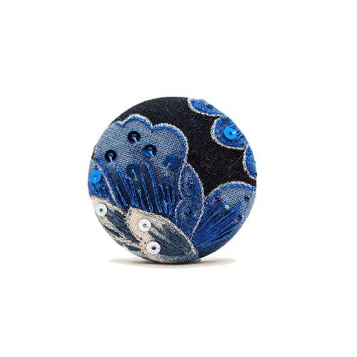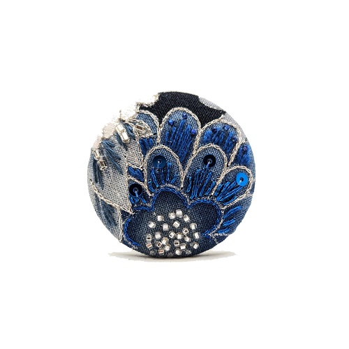 J’ai souhaité créer une gamme de boutons entièrement brodés à la main, que je vous propose en broche aimantée. Elle comporte 2 aimants, le premier à l’intérieur du bouton et le second à placer à l’arrière du vêtement.