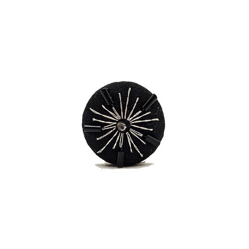 Cette broche est composée de 2 aimants, le premier se trouve à l’intérieur de la broche et le second, recouvert de PVC, se positionne au dos d’ un vêtement léger, pour réduire le décolleté d’une robe croisée, et pour fermer un foulard.