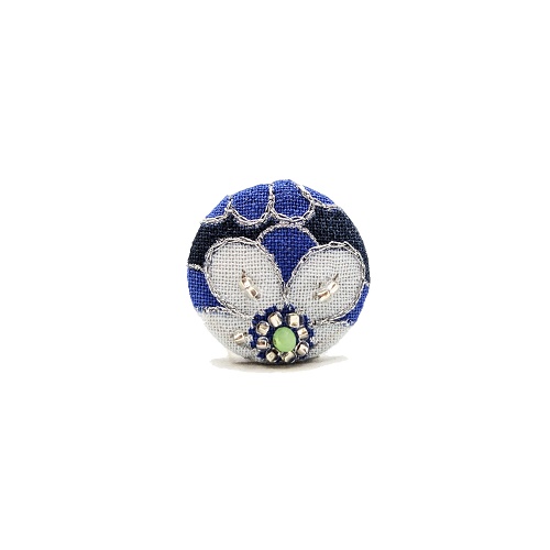 Ce motif est entièrement brodé à la main sur un tissu japonais imprimé.