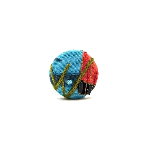 Ce motif est entièrement brodé à la main sur un tissu japonais imprimé.