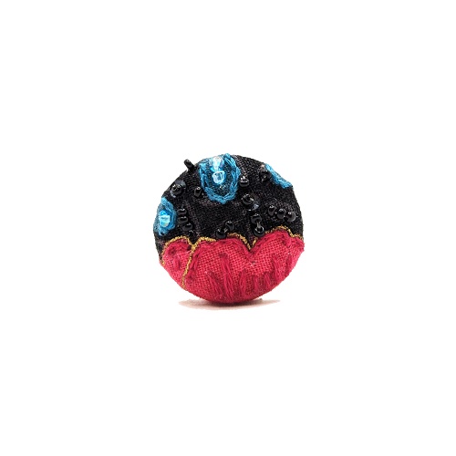 Ce motif est entièrement brodé à la main sur un tissu japonais imprimé.
