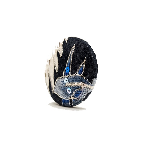Cette broche est composée de 2 aimants, le premier se trouve à l’intérieur de la broche et le second, recouvert de PVC, se positionne au dos du vêtement (ils sont d’une puissance suffisante pour tenir sur une veste en cuir ou en jean, ou même un manteau).