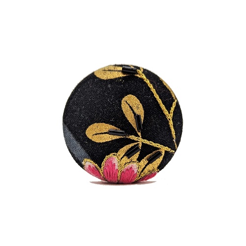 Ce motif est entièrement brodé à la main sur un tissu imprimé japonais.