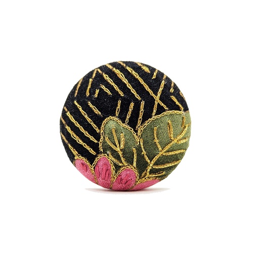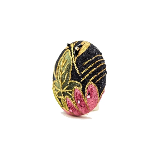Ce motif est entièrement brodé à la main sur un tissu imprimé japonais.