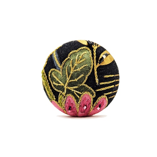 Cette broche est composée de 2 aimants, le premier se trouve à l’intérieur de la broche et le second, recouvert de PVC, se positionne au dos du vêtement (ils sont d’une puissance suffisante pour tenir sur une veste en cuir ou en jean, ou même un manteau).